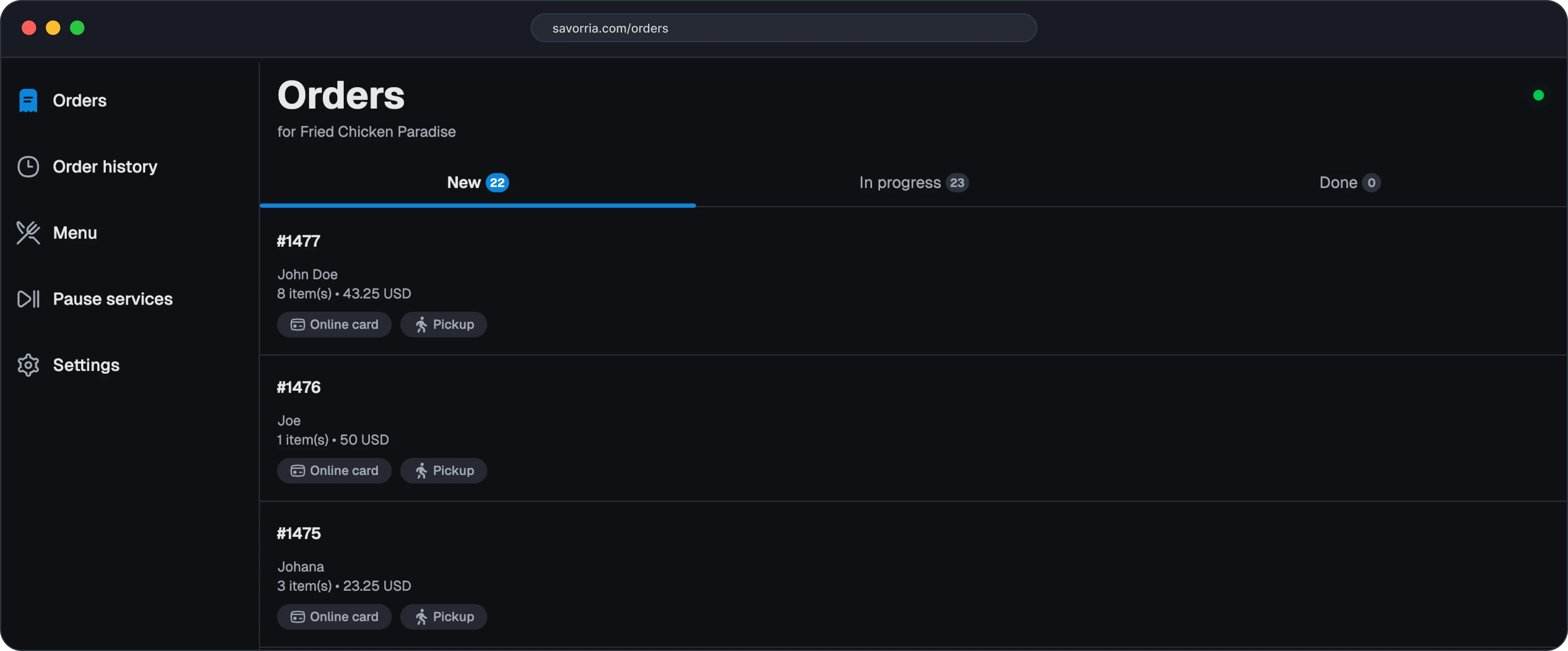 Manage online orders from the browser